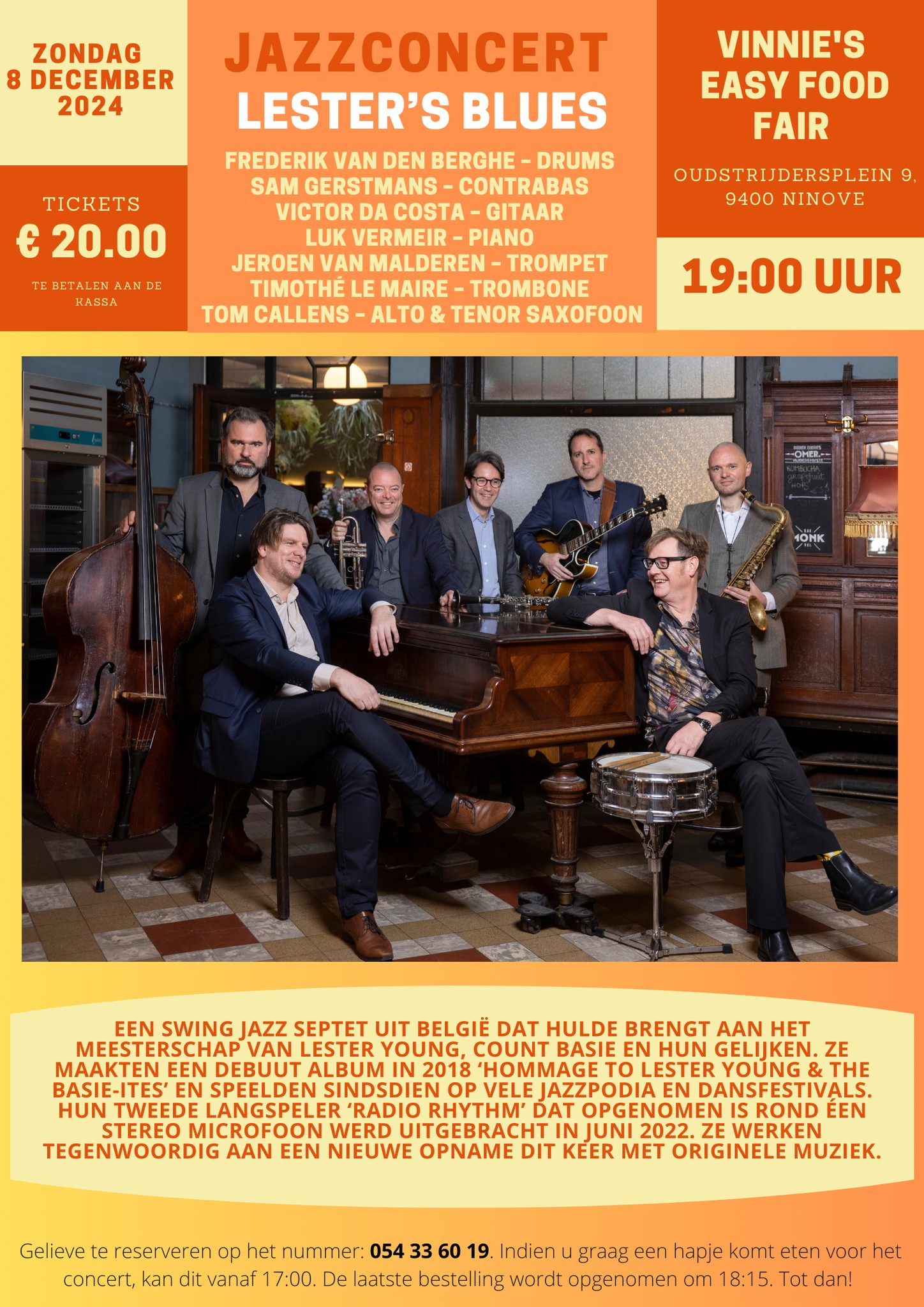 Jazzconcert zondag 8 december om 19:00 Vinnie’s Easy Food Fair Oudstrijdersplein 9, 9400 Ninove in