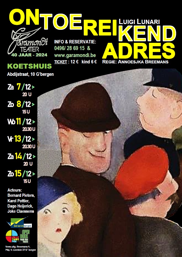 Ontoereikend adres  – PREMIERE: zaterdag 7 december 2024 om 20u – zondag 8 december 2024 om 15u
