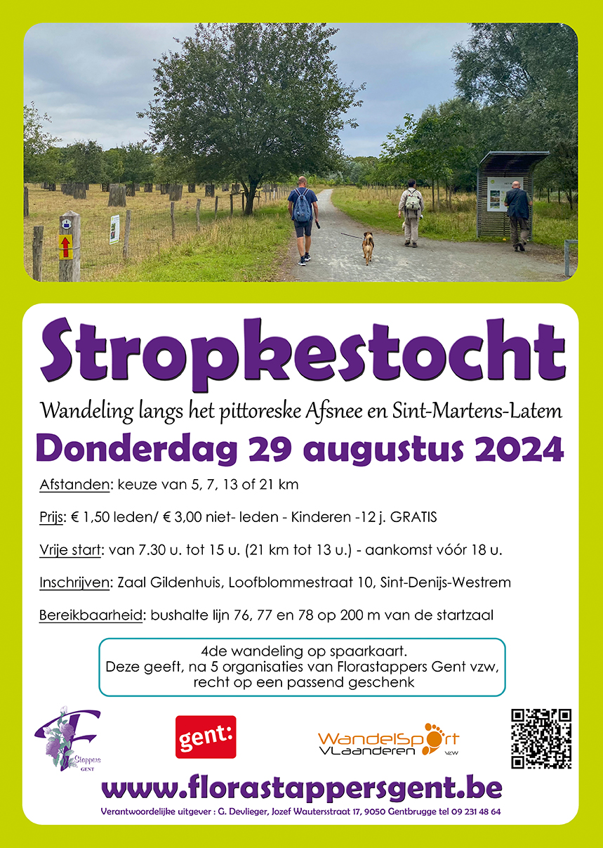 Donderdag 29 augustus 2024 Startzaal: Zaal Gildenhuis, Loofblommestraat 10 te 9051 Sint-Denijs-Westrem Afstanden: 6, 8,